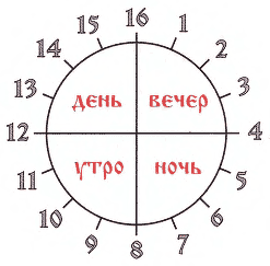 Пояснение рисунка: на внешней стороне дни недели (не указаны) и их покровители. За углами треугольника три луны: Леля, Фатта и Месяц. В центре треугольника символ Мидгард-Земли. День недели, в который ты родился для тебя счастливый. О девятидневной неделе помнили еще не так давно, мы можем убедиться, прочитав сказки сибирского сказителя Петра Павловича Ершова: Ну, Гаврило, в ту седьмицу Час равен 1½ григорианскому. Каждый Час имеет своё название: