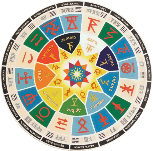 Ярило-Солнце входит в "систему тройной звезды" (выражаясь астрономическим языком). Кроме него в неё (тройную систему) входит Белый Гигант и Коричневый Карлик (Мара). Одна из Земель Коричневого Карлика - Нимизида (которую изображали, как диск с крыльями) уже видна в южном полушарии и даже в части северного (до Анталии включительно). С мая месяца 2011 года она будет видна везде – это "так называемая" Нибиру, имеющая период обращения 3600 лет (перепутать ее будет трудно – зеленая с "крылышками"). Сутки Сварога = 180 Кругов Жизни (25 920 Лет). Сейчас считаю веками (по 100 лет), а Славяно-Арии считали Кругами Жизни, который состоит из 9-ти Кругов Лѣт или равен 144 Лѣта - это минимальный срок жизни для людей в этом мире. Соответственно Круг Лѣт = 16 Лѣт: пятнадцать простых Лѣт и шестнадцатое - Священное Лѣто. Это происходит из-за того, что каждые шестнадцать лет орбита Мидгарда удлиняется из-за взаимодействия с другими Землями (планетами) и Лето удлиняется на 4 дня. Этот цикл также связан с древними событиями, а именно 15 лет шло переселение Родов Расы Великой из Даарии в Рассению (территория от Урала до Тихого океана), а 16-ое Лѣто наши Предки обживали новые земли и возносили славу Богам Нашим. В честь этого события Предки стали праздновать Пасхеть, что в переводе с х`Арийской руники означает "Путь по которому шли Боги". Отчёт Лѣт ведется от дня Великого праздника Рамха-Ита (или от дня Новолетия, т.е. начало нового Лѣта). Каждое Лѣто имеет своё название. Сейчас Лѣто " ". Чтобы это проверить по таблице ДКЧ нужно к году от Р.Х. прибавить 5508, а если уже прошел день осеннего равноденствия, то прибавить 5509. И от полученного отнять 7376. Получим Лѣто . По таблице ДКЧ находим, что числу соответствует Лѣто " ".