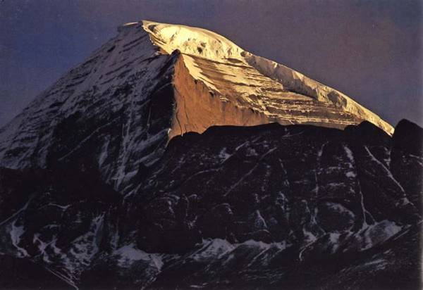 Следуя общему мнению, Г. Меркатор помещает Гиперборею на Северном полюсе, не зная, что в результате катастрофы к 11 000 году до нашей эры угол наклона оси вращения Земли и Северный географический полюс сместились. Каких-либо исследований по этому вопросу никто не проводил. О последствиях практически ничего не написано, поэтому в сложившейся ситуации нам придется разбираться самим. Сейчас мы попробуем выяснить, куда отклонилась ось Земли и на сколько. Для этого вспомним, что великая пирамида атлантов смотрела своей северной гранью на север в южную грань Меру. Но Атлантида скрыта водами океана, зато сохранился Кайлас в Тибете. Для удобства, рассмотрим Кайлас сверху с помощью аэрофотосъемки (Ил. 30). Снимок сделан с высоты более 20 км и сориентирован строго по сторонам света. Центральная стрелка показывает направление на современный Северный полюс.