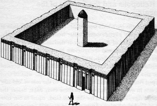 Описанное в древнем папирусе зодиакальное событие произошло не сразу. "Обратный отсчет зодиакального времени" длился до тех пор, пока силы инерции и "внешнее вмешательство" не привели к тому, что вращение Земли ускорилось. Период сбоя и последовавшая за этим первая, самая критическая фаза нестабильности параметров Земли, длились несколько сот лет и менее заметно продолжается и сейчас. За это время отклонение оси вращения Земли, составившее вскоре после удара астероида 20° от исходного значения, постепенно уменьшилось, но ещё не вернулось в прежнее положение, вследствие чего Северный географический полюс Земли смещен на 15°. Лишь через 1153 года после страшной катастрофы, когда планета уже несколько сот лет находилась в относительно стабильном состоянии, потомки жрецов, покинувших Атлантиду в составе флотилии Нээф-Туна и обосновавшихся в районе Средиземноморья, завершили сложнейшую работу по пересчету основных данных по цикличности и прецессионным ритмам. Судя по шкале времени Дендерского Зодиака, работа была завершена где-то к 10512 – 10500 году до нашей эры. В начале, используя знания, полученные некогда от Неферов, жрецы возвели систему обелисков с прилегающими к ним храмовыми сооружениями, на определенном расстоянии друг от друга. Затем, проводя наблюдения за прохождением звезд над обелисками ночью, и, изучая отбрасываемую ими тень днем (Ил 49а), жрецы произвели необходимые астрономические расчеты. С помощью этой простой, но очень эффективной системы жрецы получили данные о длительности прецессионного цикла, который после удара астероида и отклонения оси Земли составил 25920 лет.
